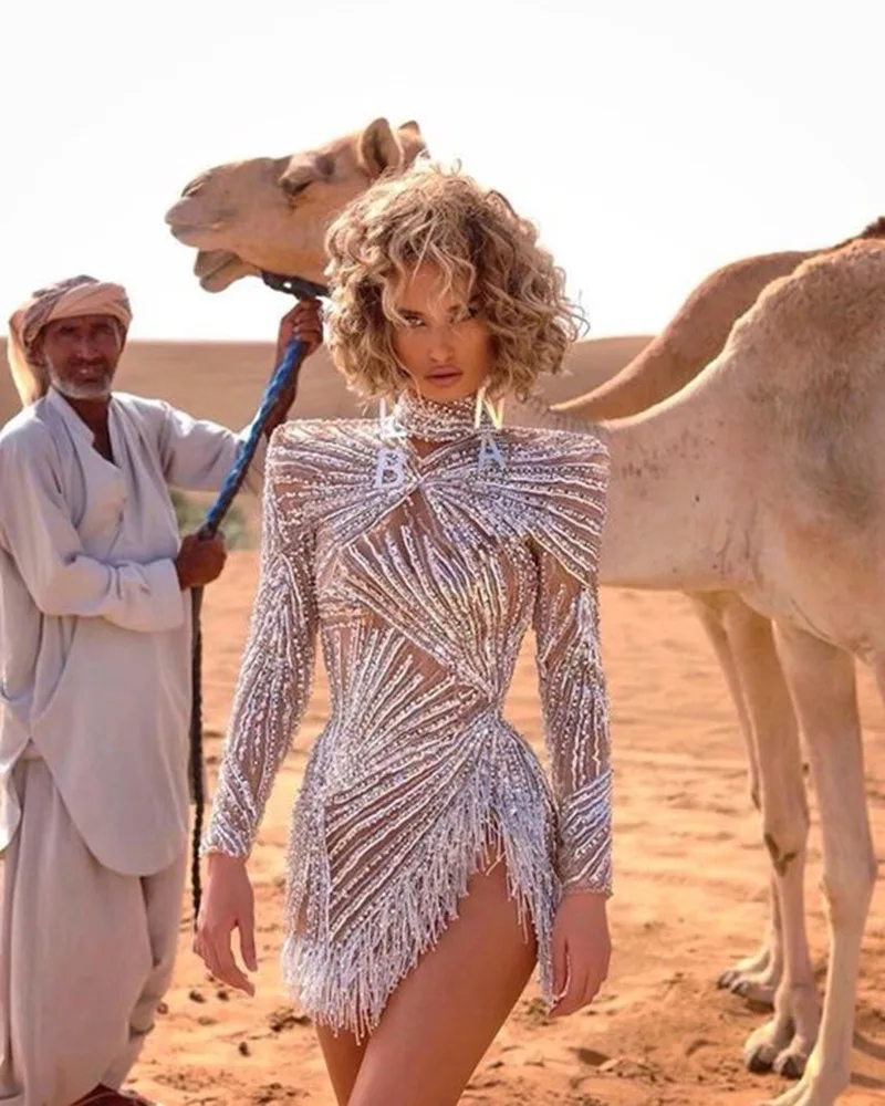 High Quality Plus Size Sexy Cocktail Dresses Club Night Fashion Bodycon Hand Embroidery Beading Evening Wear Custom